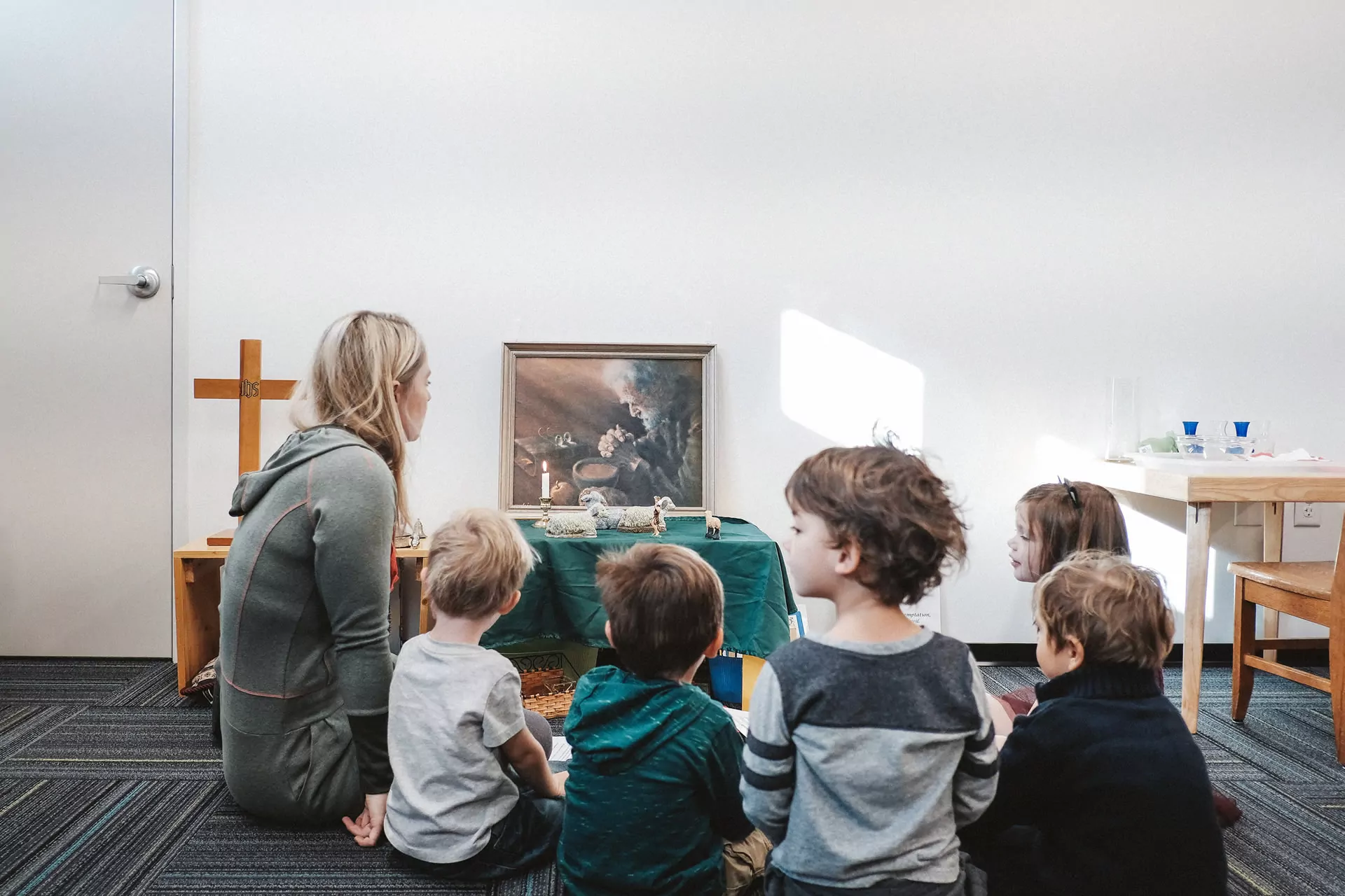 Our teaching is based on the conviction that God and young children have a unique and special relationsip. We desire to be a place of invitation and understanding for the church's children to join church members in forming their faith, rooted in the love of God and His history of salvation. We want to help foster a trusting relationship with God and to know first Christ's love He has for His people as a shepherd loves his sheep.